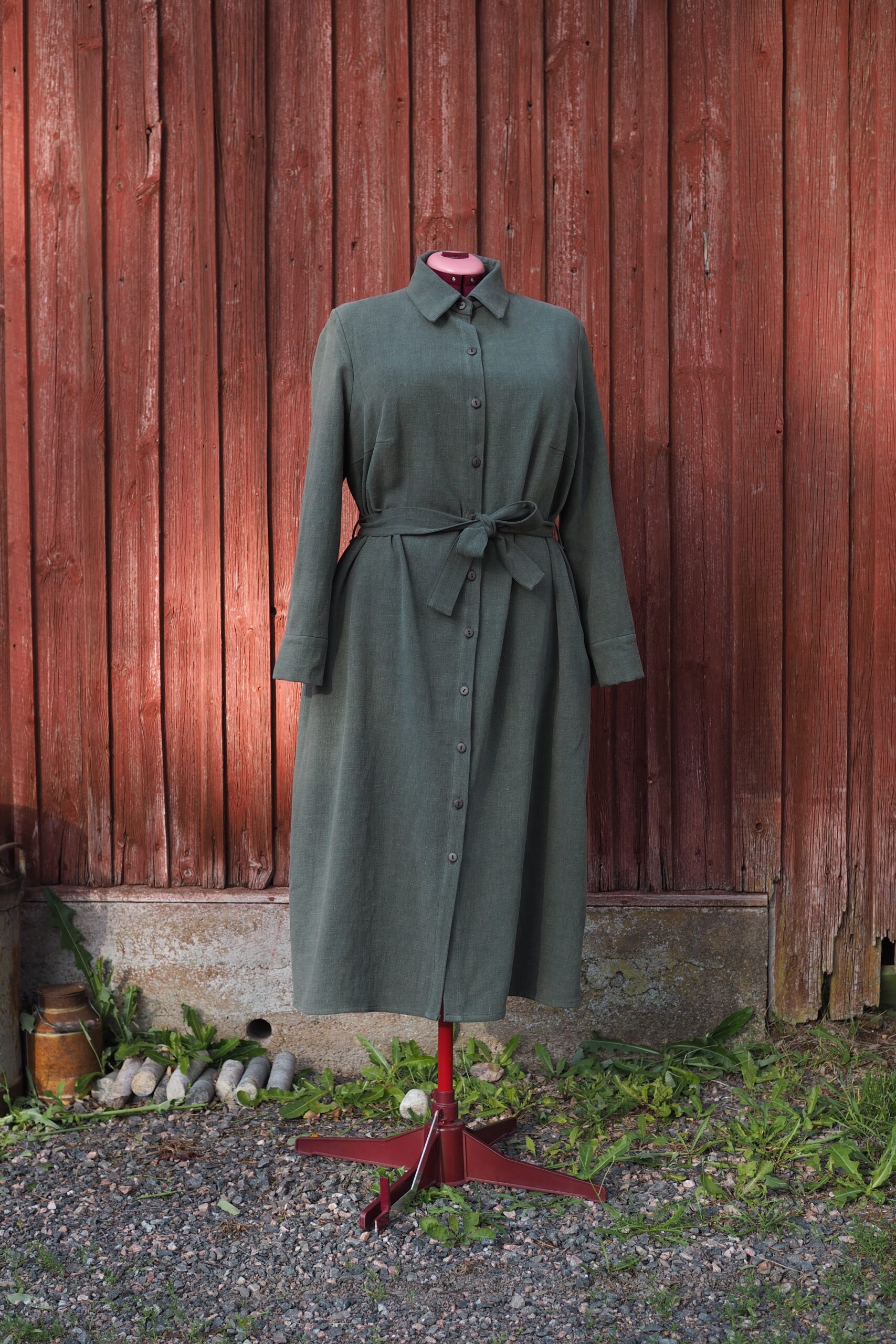 Malvikki paitamekko on ihanan ajaton ja monipuolinen luottomekko, joka toimii täydellisesti niin mekkona kuin jakkunakin paidan ja housujen kanssa. Yläosastaan kivasti istuva ja kevyesti alaspäin levenevä malli on mukavan ryhdikäs antaen kuitenkin rentoa väljyyttä vyötärölle ja lantiolle. Mekossa on paitapuserokaulukset, täyspitkät rannekkeelliset hihat, halkiot helmassa ja siihen kuuluu irrallinen, solmittava vyö. Valitset itse, haluatko mekkoosi taskut vai et.