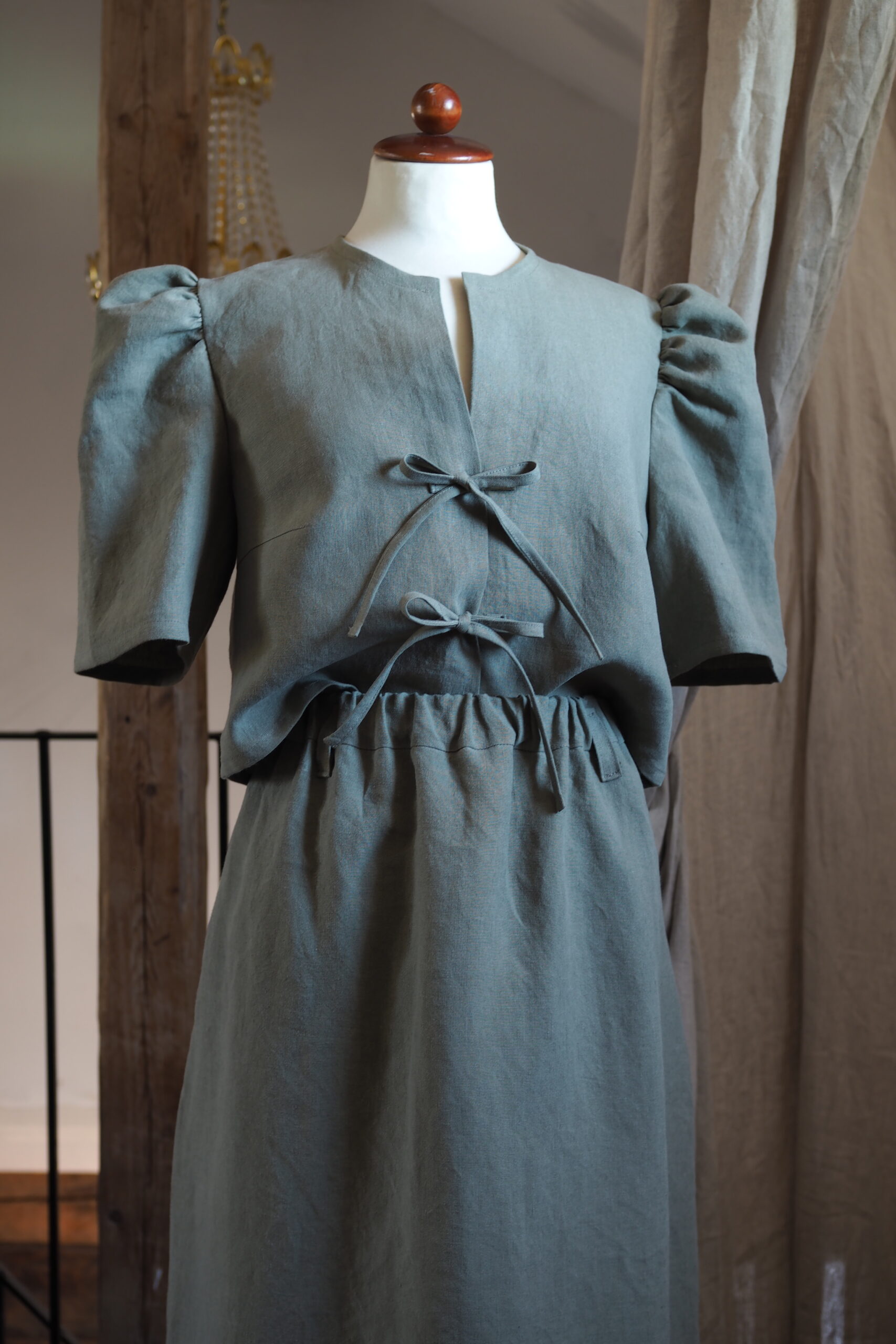 Sievikki on aivan ihana ajattoman tyylin piriste arkeen ja juhlaan – farkkujen, housujen ja hameiden kaverina! Siinä on ihanat puhvihihat ja sirot solmimisnauhat edessä ja etureunat menevät hieman päällekkäin aivan kuten paitapuseroissa, joten rintaliivit ja iho pysyvät piilossa.